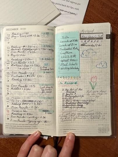 2023Hard goals3 pages every day. The diary will no longer count.500 words a day OR 0.5 hours of writing/editing/revising that isn’t the 3 pages1 weekly vlog with writing updates1 weekly review on a book about writing and storytellingAdd hours to my time-tracking app at the end of every month (I’m going to try this one again, with some key habit changes to make sure I stick with it)Soft goalsSend Perceiver 2 off for editing5 short stories from draft to done (I’m going to try this again)10,000 followers on TikTokReview another 26 books on writing and storytelling (right now, I’ve reviewed 26, or one a week since I started my TikTok.) Concluding ThoughtsWhen I try to think of an anecdote that sums my year tidily, I can’t. Maybe it’s this one: