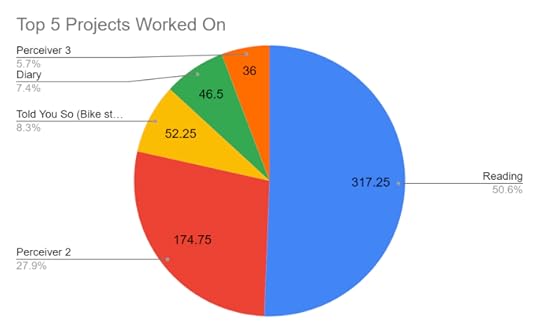 As usual, reading took the top spot. I read slightly less than usual, but still about as much as I normally do per year. Perceiver 2 takes second place, and the sequel, Perceiver 3, takes fifth. “Told You So” is a short story that I’ve spent far too long on. Diary is, of course, my diary.