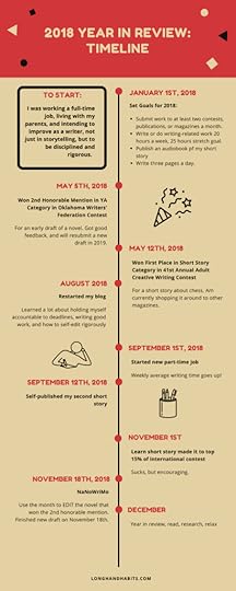 2019 New Year’s Resolutions2018 was the first year I’ve worked at least part-time hours for fiction writing; my growth during that time has been incredible, and I’ve accomplished things that I didn’t know I should have been on my radar, such as restarting my blog, learning book design, and learning how to self-edit. I also received surprising honors: an honorable mention in a state-wide writing contest, reaching the top 15% in an international competition, and outright winning a local literary contest. It’s heartening to see that people like my writing, because that’s the entire point— to writing stories that people enjoy and find deeper meaning. This wouldn’t have been possible if I didn’t set goals for 2018.