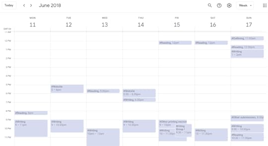 The system had to accommodate everything that went into writing.The system had to be able to track what went into writing so I could measure it, compare it, and record it. The system had to be flexible, free, and simple. Google spreadsheets, Google calendar, and an add-on called TimeSheet worked perfectly together to achieve this.So, what goes into a writing career? There’s writing itself. Editing, research, outlining, and getting feedback. Marketing and networking. Reading, of course. And all the other small things that needed to be done.