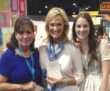 Me with Karen Kingsbury and Kelsey On Tuesday I was at the ACFW booth helping out then later walked around to see who was book signing and found the lovely and talented Karen Kingsbury, author of a zillion books! She has a new line of greeting cards that she and her daughter, Kelsey, designed. My church's bookstore, The Bookmark, carry them.