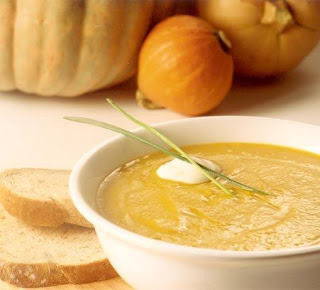 Heat a soup pot over medium heat. Add oil. When oil is hot, add onion. Sauté onions 5 minutes. Add broth, tomatoes, black beans & pumpkin. Stir to combine ingredients & bring soup to a boil. Reduce heat to medium low and stir in cream, curry cumin, cayenne and salt, to taste. Simmer 5 minutes, adjust seasonings and serve garnished with chopped chives.