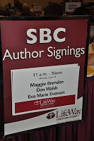 share some pictures with you from my LifeWay signing at the Southern Baptist Convention. I booksigned with Eva Marie Everson and Dan Walsh. I've read Eva's books and looking forward to reading Dan's now. Later we had lunch together and I thoroughly enjoyed getting to know them better. Elaine Helms, prayer minister for NAMB stopped by to say hello. She's had one book on prayer published and working on another one. Way to go Elaine! She was...