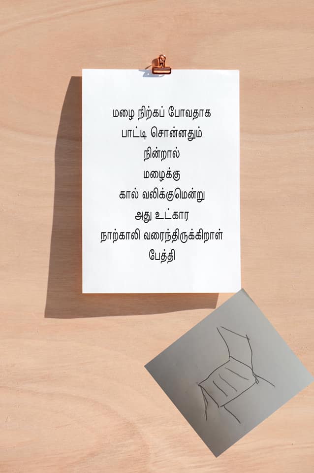 டீ போட்டுக் கொடுத்துவாக்கு கேட்டுவிட்டு நகரும் உங்கள் கண்களில்இஸ்திரிக்காரர்நாற்றுநடும் அக்காசித்தாள் எனஎல்லோரும் படுகிறார்கள்மலக்குழி இறங்கும்என் தோழர்களைத் தவிர