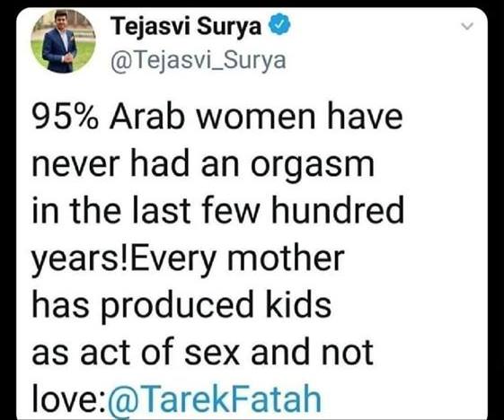 இந்த ட்வீட் பாரதிய ஜனதாக் கட்சியின் பாராளுமன்ற உறுப்பினர் தேஜஸ்வி சூர்யா என்பவருடையது என்பதை அறியும்போது மனதிற்கு வேதனை அளிக்கிறது.