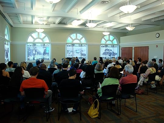 ... was a HUGE success. Thanks to everyone who came out, and especially to our readers -- Gayle Brandeis, Mike Cluff, Sheela Free, Hillary Gravendyk (pictured above, though you can barely see the top of her head above the crowd -- she is seated beside the podium), Myra Dutton, Stephanie Barbe Hammer, Liz Gonzalez, E.J. Jones, Rachelle Cruz, Kate Anger, Jean Waggoner, Maureen Foley, Lucia Galloway, Karen Greenbaum-Maya, Ruth Nolan, & Cindy Rinne -- and Inlandia staff Pamela Atkinson, Jeff Kraus, and Mike Sleboda. Couldn't have done it without you! (More photos to come -- will post when the gallery is up.)