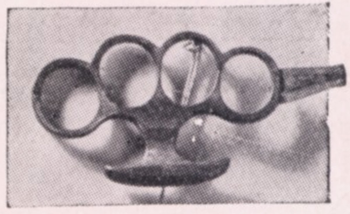 Burglar's pockets for holding the tools shown below them. From 'Living London' (1901)Or the knuckleduster: