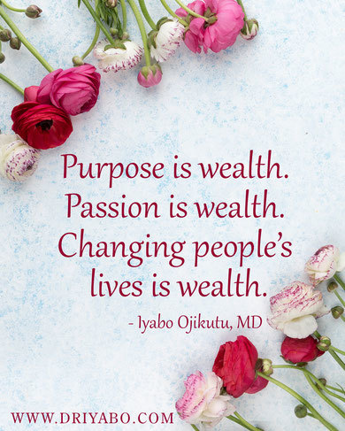 Purpose is wealth. Passion is wealth. Changing people’s lives is wealth.