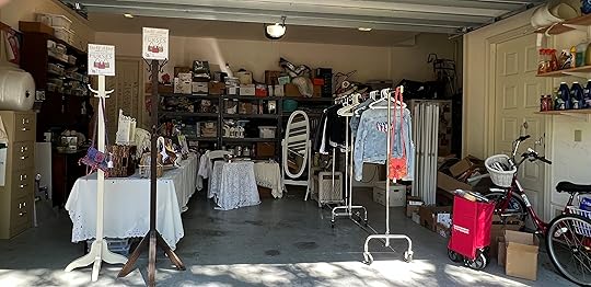 I awoke Wednesday morning – no words had yet sprinkled onto my computer screen. No biggie. I went out to lunch with my buddies and twiddled around with the ten-by-ten-foot layout I had chalked on my garage floor to see how my crafts booth would look. (I’d classify it as a work in progress and that is being overly generous.)