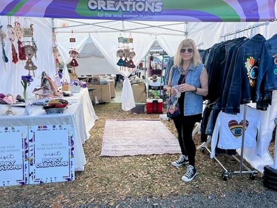 How to stand out from other booths with a large banner in front (still working on this – my first idea was Funky Creations From A Bad Ass Boomer – which was shot down definitively by the contact person at the crafts fair for not being “a family friendly” slogan – I reluctantly toned it down to Funky Creations For The Wild Woman In You.)