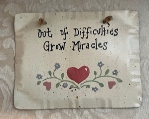 I’m devoting this week’s newsletter to a glimpse of some of the plaques and signs I have hanging around my house. They give comfort, provide inspiration and provoke hope – all of which seems to be in short supply these days.