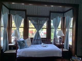 I re-climb the stairs, wake my husband, we order a pizza, eat too much of it and then sleep soundly til morning. When the tantalizing aroma of maple syrup and strongly brewed coffee drifts up past the majestic stain glass windows lining the staircase and eases into our room, we rouse and gaze out the window.