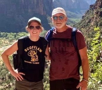 Above is a picture of Mark and his daughter Taaron on the trail to Angel’s Landing in Utah – one of the most dangerous hiking trails in the country. His in-your-face motto emblazoned on his t-shirt falls seamlessly in line with his philosophy on life: Die with memories not dreams.
