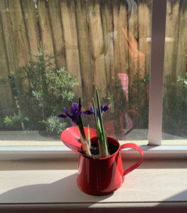Strong beams of sunshine beat down on my window sill – allowing my Iris bulbs to blossom