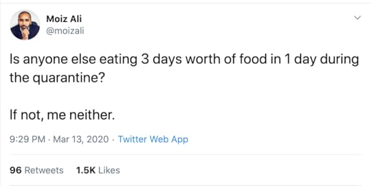 I’m not alone in my frustration to stuff my face and immobilize my body. Here’s a few recent tweets: