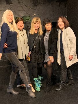 L to R: My friends Michele and Francine on each side of me, bookended by the playwrights Debra and Lee.