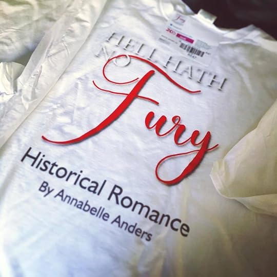 I have two "Hell Hath No Fury" T-Shirts to give away. If you'd like to enter to win one of them, Join my Reader Group (A Regency House Party) (Yay) and post your preferred size in the giveaway comments! Size can be on this post or the one on the group page) UPDATE! IF The group goes over 100 Members Before the Drawing I'm going to order two more shirts to send out and there will be 4 winners! :)COPY AND PAST THE ADDRESS BELOW AND JOIN! Don't forget to let me know which Size you'd like if you win!https://www.facebook.com/groups/AnnabellesReaderGroup/