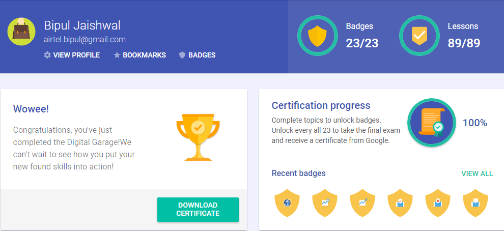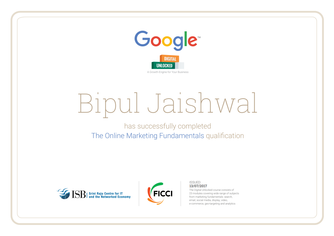 Digital Unlocked CertificateBefore you take an online fundamental exam. You must complete 23 badges to complete the exam - Learn Digital with Google - In Digital Unlock tutorials, Google provides a tutorial video and after writing SMALL Assessment, After a new assessment, the finishing of every assessment is open to the new level of the game. Once approved further 23 assessments, you will be eligible to take online fundamental exams.