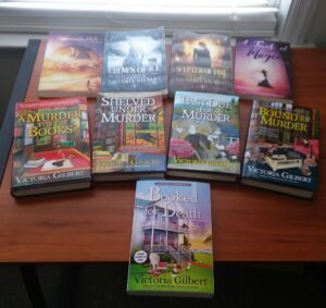 Not shown: Two completed adult scifi novels that I have shelved for now. (I do plan to write book three in the trilogy and self-pub. all three at some point). Also, I have added a separate picture of A DEADLY EDITION’s cover, since that book doesn’t come out until Dec. so I don’t even have ARCs for that book yet. But it is written! Which brings my total of actual books completed to 11, plus one long short story!