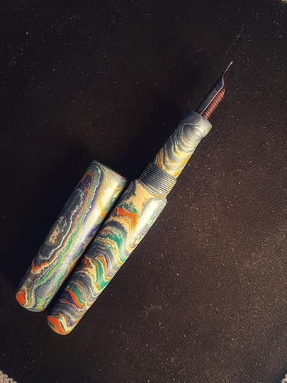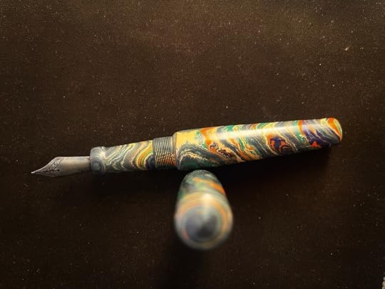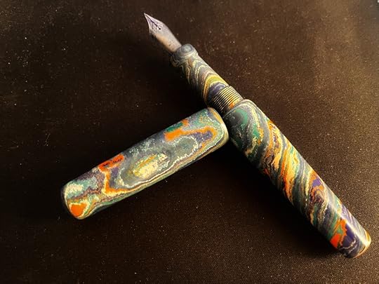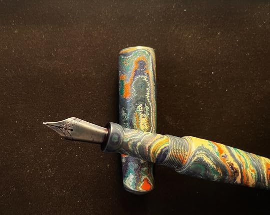 Design and constructionI swoon over this one: Ranga Abhimanyu. In fact, its construction, feel, and comfort quotients are so high that my otherwise uninterested colleagues also picked it up. I selected the mottled design because it has almost all the colors of inks that I’d like to try: blue, cream, orange, and green. It wouldn’t matter whether I am using a standard or sheening ink. There will always be at least one base color and a sheening one that matches the pen color. Overthinking, did you say? Admirer of the beauty; that’s all I hear.