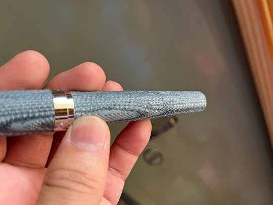 The ConstructionThe pen is made entirely of denim—almost entirely, that is. It seems layered denim bound using resin and ground and semi-polished into a smooth-surfaced pen. The pen has quite a girth. And, because it is made of stacked, bound, and lathed pieces of denim, it is a bit on the heavier side, as well.