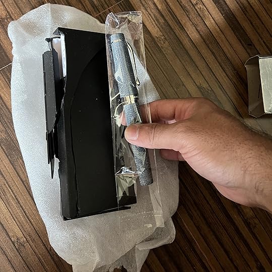 The pen arrived in a poorly packaged, broken box. The box was practically unusable and had shattered into pieces even before I unwrapped the foam, self-sticking plastic, and sticky tape. Somehow it held itself long enough to protect the pen. There wasn’t any branding on the box, and the cartridges were missing too. Basically, it seemed a hurried, lackluster job from the person who sent the parcel. Although when I opened the box, I could see that the pen did come with a standard international Schmidt converter, it was insufficient to console my broken heart (and the broken box).