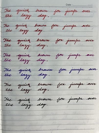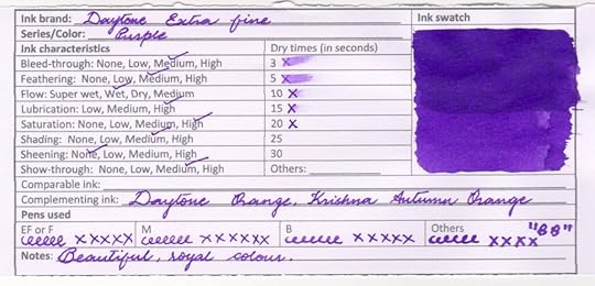 This is a shading ink and not a sheening one. So, despite how much amount of ink I poured on the paper, I could not find any signs of either purple or blue.