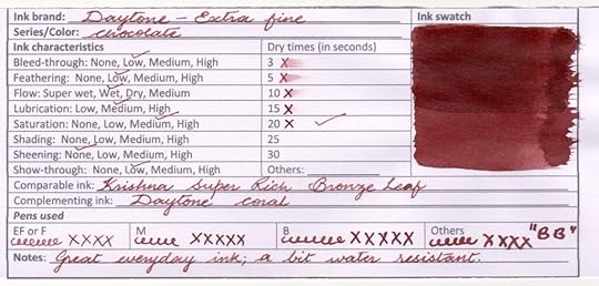My Pilot Custom 823 in Amber inked with ChocolateIn daily use, I have found the inks to be pen friendly. The inks may not always be paper friendly, insomuch as they will require a fountain pen-friendly paper. You can view more writing samples on my Instagram feed: