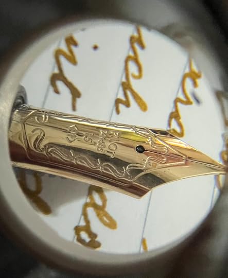The high-capacity vacuum filler has sufficient capacity for the pen to last a good couple of weeks before I refill it. I have paired it with Krishna Bronze Leaf and Daytone Chocolate inks. Both inks have paired and performed superbly with the pen.
