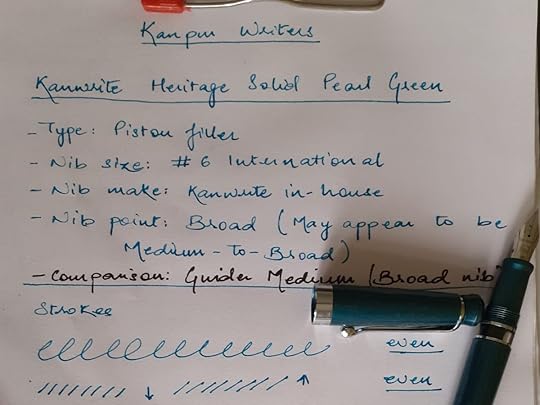 NibI got a Broad one, but it feels more like Medium to Broad. On occasions, I got Broad strokes, but mostly it leans more toward the Medium width. For comparison, I wrote using my Guider Medium ebonite, which, too, uses a Broad nib. But, the Guider one writes more between Broad and Double-Broad.