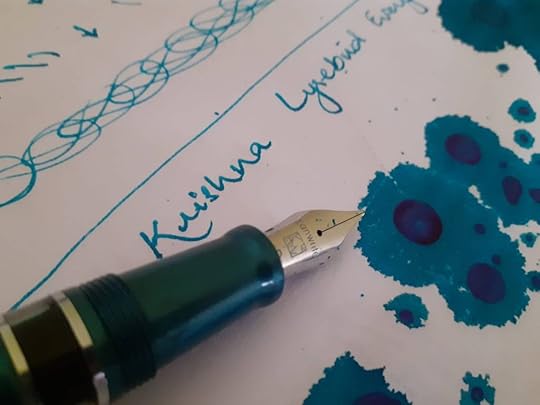 For a combination, I chose the Pearl Green color and teamed it with the Krishna Lyrebird Everyday Turquoise Blue ink. This combination, I must say, has come out really well. Really well—worth the repetition, that is.