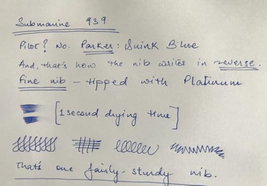 And, so began my review even before I had filled the pen with ink. But the support was kind enough to let me know that Submarine Pens didn’t deal with Fine nibs and were as shocked as I was. They kindly agreed to send me a Medium nib, which should be on its way right now.