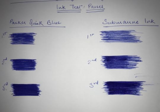 In tests limited to my knowledge, exposure, and technique, Parker’s Quink won. I had used a regular 60~70 GSM printer paper. Through the first, second, and third passes, Quink flew better and was more saturated. But I used a cartridge for Submarine ink and the converter for Parker’s Quink. So, I’d give a point to the converter because it did the job it is meant to do.