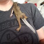 And speaking of babies…we had a baby! A baby squirrel! ^_^ “Puppy” was only with us for a few days before he went to the vet to continue rehabbing, but Hops the dog was absolutely in love with her puppy, and I was pretty fond of him too. Still, cats and baby squirrels don’t mix.