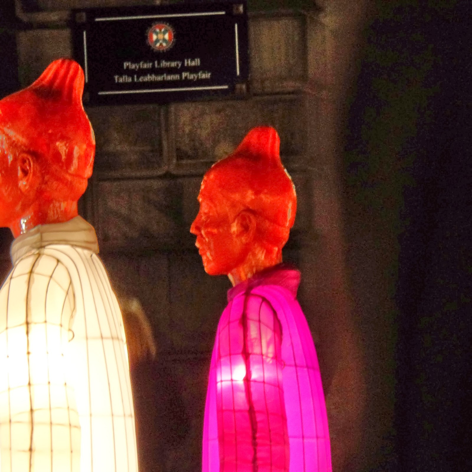 The exhibition of Chinese lantern warriors at Edinburgh University is beautiful and haunting, the figures sway gently in the wind, the old quad is a gorgeous backdrop. These ninety figures made me think of Jelly Babies marching. And there are benches for resting, always important.