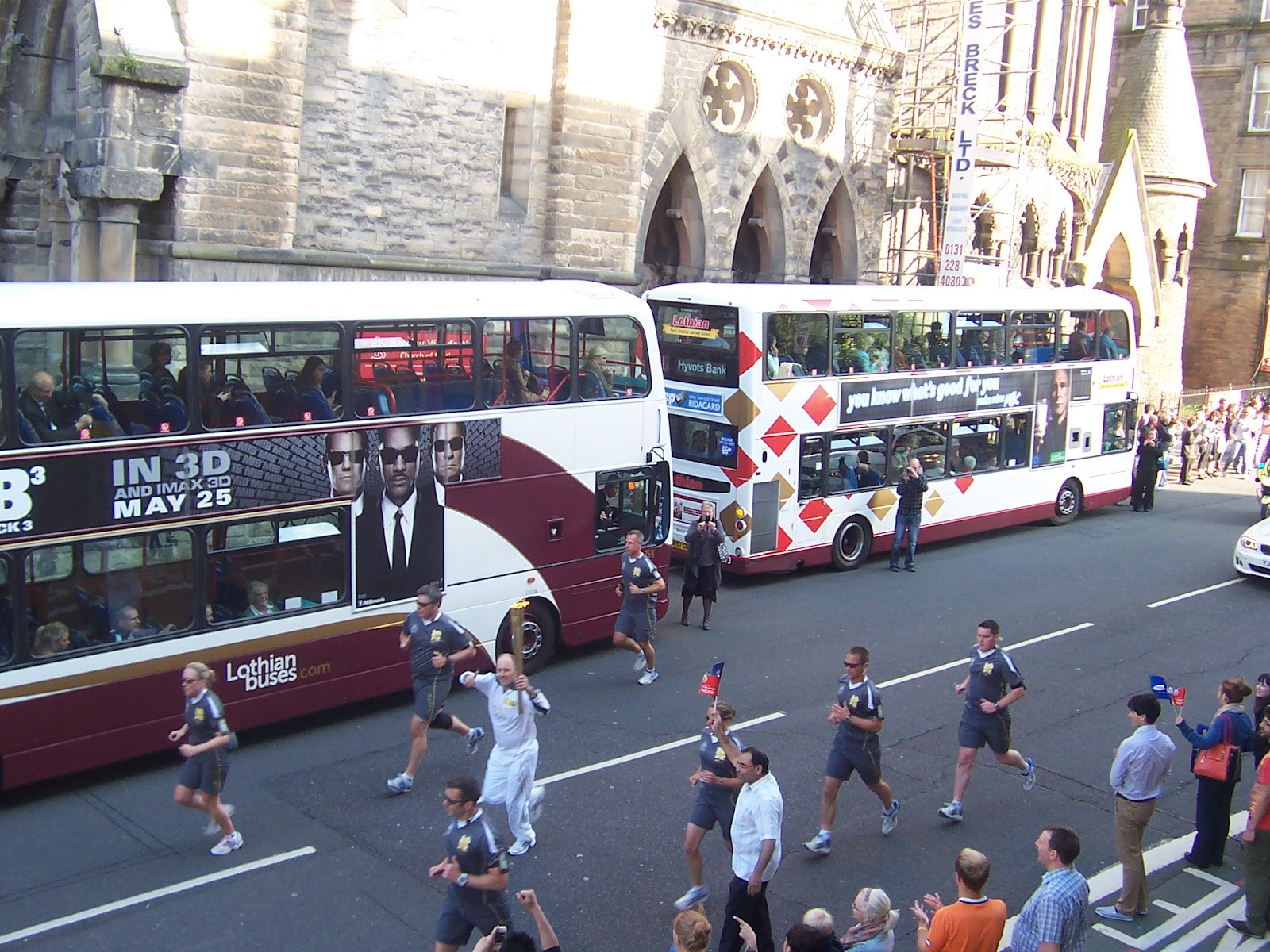 Was a lovely moment seeing the Olympic flame from my windowsill, though it passed so quickly and a shame the buses parked right in front of the church. The sun shone and I had a tear in my eye. I understand much better this sort of celebration - applause for talent and hard work, the Olympic spirit - unlike that monstrous affair we had at the beginning of June.