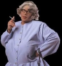 I've gotten the impression after hearing Tyler Perry speak on occasion, that he'd rather not play Madea anymore. He said something like it takes four hours to get into the make-up and the entire costume, and it can get hot in all of that padding. I don't think he feels good at all luggin' those big saggin' breasts around. I believe he said they are stuffed with bird seeds. If you have never seen the wild woman Tyler Perry created, check out the picture of Madea up in the corner. That's a whole lot of birdseeds! But this talented man has said that as long as people want to see Madea, he'll play the role. I do not condemn him for that choice. I applaud him for giving people want they want; a character they enjoy watching because she makes them laugh.