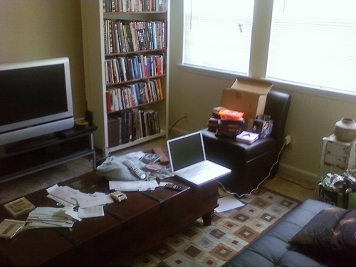 You can kinda, sorta see a living room starting to take shape. This place is MUCH bigger than my last apartment and I find I don't have the art to cover the wall space. I'll have to do something about that.