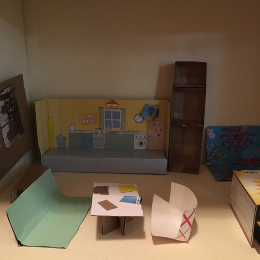 We then turned our attention to the furniture. As a four year old who has often stared mesmerized at miniature homes in our library and doctor’s clinic, T had a clear vision of how her dollhouse should look. It also didn’t help that our elephantine-memory-posessesing kiddo is pumped up with advertisements (sans the Skip Ad feature) of Barbie play sets and Peppa Houses and Shimmer&Shine castles and the likes. She definitely knows the items she needed in her dollhouse.