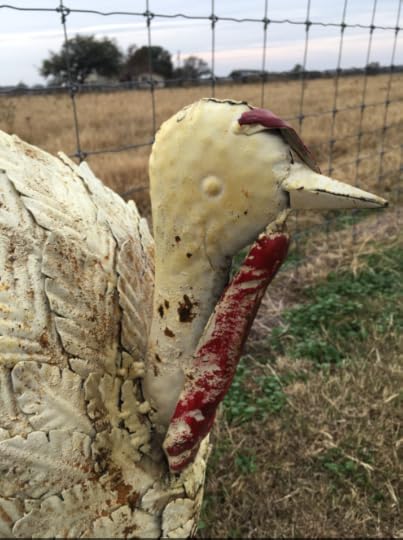 Meet Fat Stanley. That’s what I’ve named the turkey that Glen’s sister Denise gave me on her arrival two days ago. In a huge and happy surprise, Denise impulsively decided to make the road trip from Colorado to Texas and spend Thanksgiving with us. And in the spirit of the season, she brought us a turkey. A metal one, thank heavens, so we don’t have to eat it. Because as I remarked in my November 24, 2016 post, “A Short List of Small Gratitudes,” I’m grateful that eating turkey at Thanksgiving is not mandated by law. (Ergo, the standing rib roast planned for tomorrow.) Denise knows me so well.