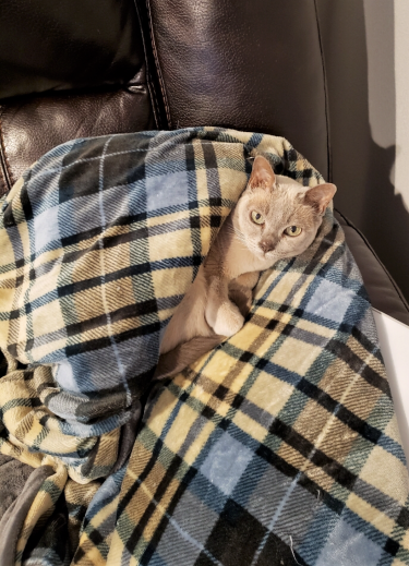 The Daughter, on the other hand, is mother to the consummate companion cat: a 14-year-old Tonkinese named Tsuki. Less than half Phoebe’s size, Tsuki is oozy, clingy and adorable, and as limber as a Chinese acrobat.