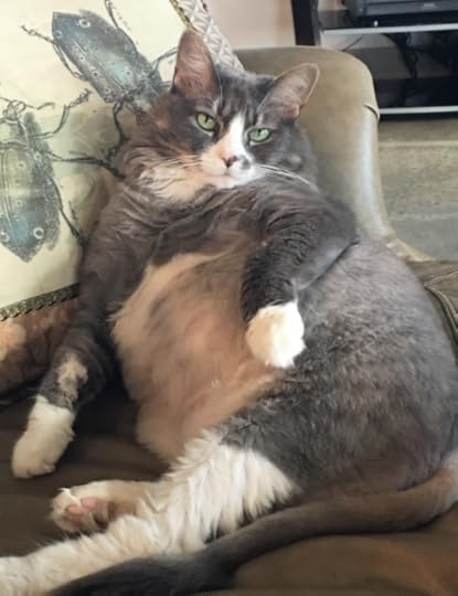 Now that Phoebe’s 10, diabetic and spherical, the bathroom sink is beyond her leaping capability. Thankfully, drinking from the water bowl on the floor doesn’t cause nearly as much commotion. But she continues to wake me in the wee hours, perhaps even more often now to compensate for what she can’t do anymore. And after she’s had her fun toying with me, she gets to sleep all day—a win-win for any cat.