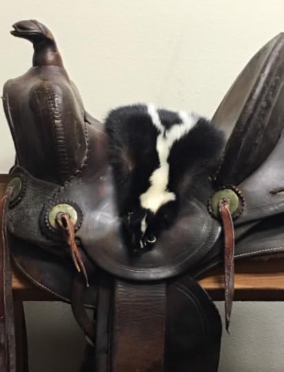 The other morning Glen and I were going into town together and drove through a lingering patch of skunk funk. That’s all too common here from about mid-February to mid-May. Skunks are mating in February and March, then raising their young, and all this activity evidently creates many opportunities for them to spray. Forcing the non-skunks among us to avoid breathing as much as possible for those three months. Because even in our climate-controlled houses, we can’t escape the stench that hurtles miles across country on the evening breeze. In our cars, we try not to drive over the still-pungent black-and-white-striped pelts flattened on the asphalt. (So many bodies!) If we’re lucky, that’s as personal as our skunk interactions get.* Some of us, however, are less fortunate.