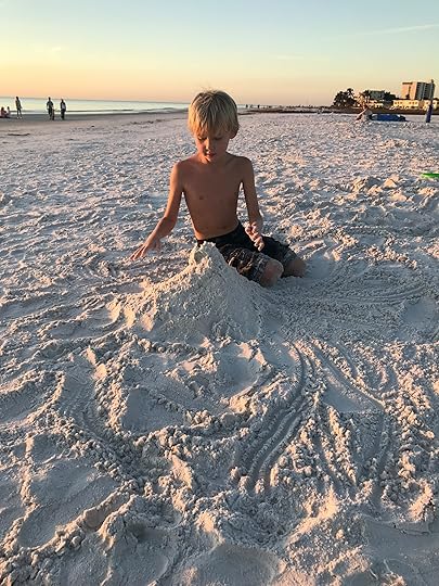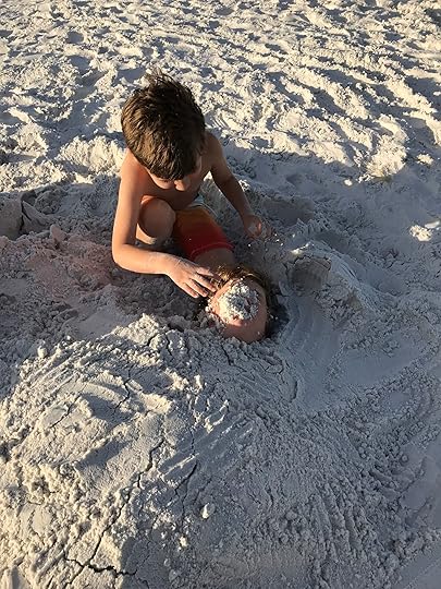 Tommy made lines in the sand with his toes and tried to smash clumps of it in his mouth. I don’t blame him – it’s soft and white and lovely – but it didn’t taste as good as it felt. Wiping it from his nose was complicated because his fingers were sandy, too. Then he found the sleeve of my yellow cardigan, wiped the snot, spit, and sand on that, and was good to go.