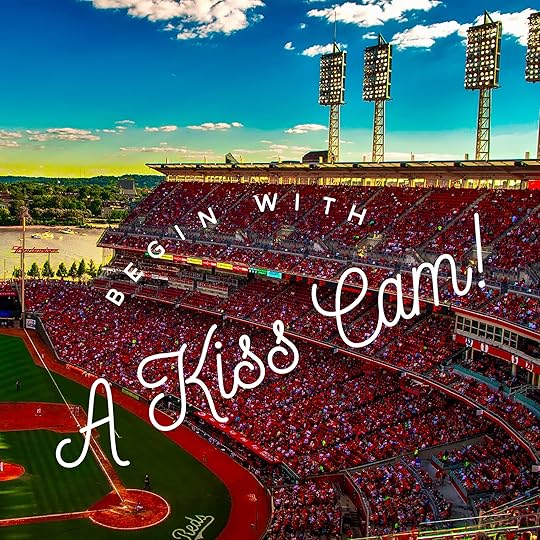 Baseball Game #2 – Cincinnati Reds, and I was 21. I hoped that the baseball game 15 years ago would be my last, but I married a baseball nut who thinks the Reds on the Radio makes for the perfect three-season soundtrack. Mercifully, Matt requests my presence at only one game a year, and it was at this, our first as newlyweds, that I noticed MLB had livened it up for the bored, bored, bored with gimmicks almost interesting enough to make me look up from my book (See Baseball Game #1), like a kiss cam. I thought, “Wouldn’t a kiss cam make for a cute start to a love story?” (See Lu, Chapter 4, pages 27-28).