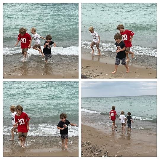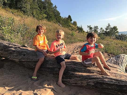 More often than not, though, I just held the book. I brought five to read, but only worked through one small one. I also brought a large journal, but I never picked up a pen. Mostly I looked around, listened, and let my mind wander. At first, it stuck on Lu business, but after 48 hours of no email or author dashboards, I shook that off. Sometimes the logistics of what awaited us on our return – school for the boys, teaching for me – snuck in, but it’s not like I was going to Wal-Mart for the school supplies I’d intended to buy before I left. I was too busy traipsing over dunes and dipping my feet in the cold water of Lake Michigan while my boys did their best to run away with the tide.