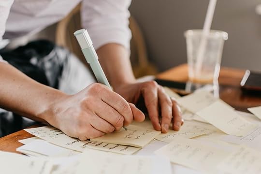 Today, as I walked a dog around the cul-de-sac, I noticed my neighbor, Angela, sitting criss-cross applesauce on her driveway and cutting up paper.