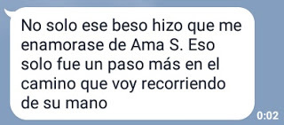 En el post anterior salió en los comentarios el tema de nuestro primer beso, que no voy a contar tampoco jaja, pero lo menciono porque un lector dijo que seguramente iskandar se enamoró a partir de ahí. Le dije que habría que preguntarle a él, y como en ese momento estaba de viaje, cuando se lo comenté, me dio su respuesta por mensaje de teléfono:
