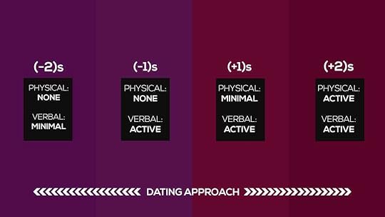When interested in someone: -2s are performing minimal verbal approach, -1s are performing active verbal approach, +1s are performing minimal physical and active verbal approach, and +2s are performing active physical and verbal approach.