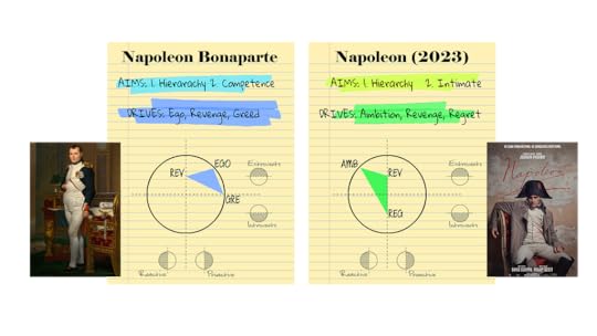 We’ve mentioned previously that Napoleon is often praised as a strategic visionary, and we anticipate in the upcoming film that he may be portrayed similarly. From a brief glimpse of the trailer, we see a quite taciturn and steely characterization which seems to hint at multiple inner drives. He seems physically slow as if he has low energy or possibly depression. We would speculate that the second inner drive along with revenge is regret, meaning he may have primary Revenge, Regret and Ambition. This would make Joaquin Phoenix’s Napoleon a reactive ambivert and possibly a strategist type. Also noteworthy is the lack of Ego. In the trailer he appears quite humble even as they are winning battles or he is crowning himself emperor. It also seems that a lot of his storyline will be devoted to his obsession with Josephine which would make him seem to have high Intimacy aims. It looks as if Josephine will be designed to be a sort of muse influencing his major decisions. We’d wager that the real Napoleon wouldn’t appreciate this.